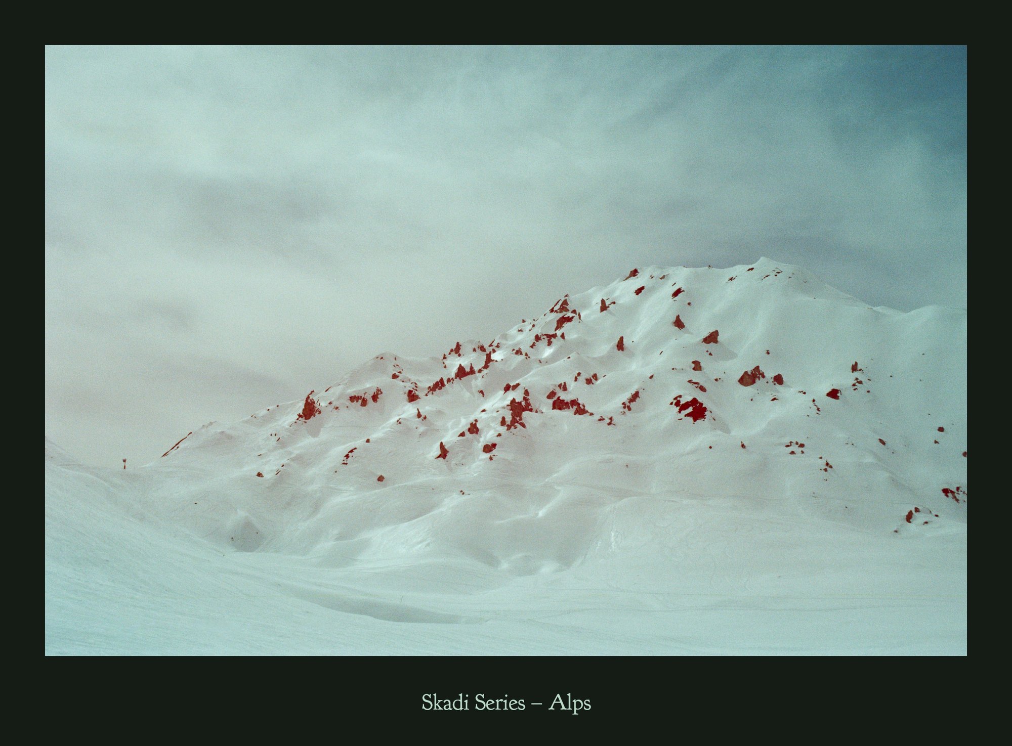 Skadi Series – Canada and Skadi Series – Alps are both from a series of snowscape photographs made using a type of coloured film that gives a wash of colour over each frame. The colour is unknown until processing, giving a little unexpected magic, and the series takes its name from the Norse goddess Skadi.